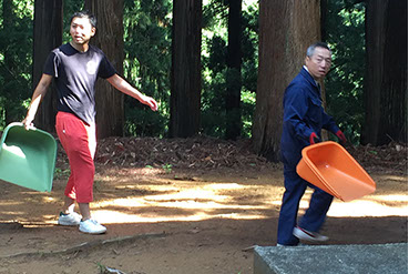 今年は、境内と池周りの雑草取りから始まり、参道を中心に雑木の伐採や剪定をした結果、長年放置されていたせいもあり、ものすごい量の雑木の山が処理されました。清掃後には参道に日の光がたくさん入るようになり奉仕をした充実感に満たされました。皆様大変ご苦労さまでした。