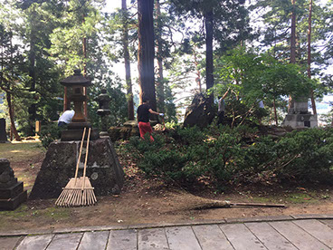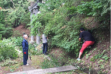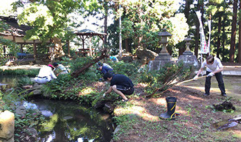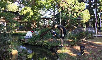 平成29年9月3日(日)各町内の皆様により、境内の池の周辺を清掃奉仕して頂きました。