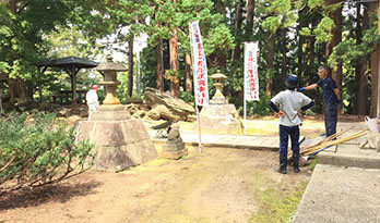 たれ下がった松の枝や雑木を倒し、池の周りの覆っていた雑草の駆除などの作業をして頂きました。益々明るい境内になったと思います。また、御神輿の台車も9月16日(土)に出して頂きました。皆様のご協力誠にありがとうございました。