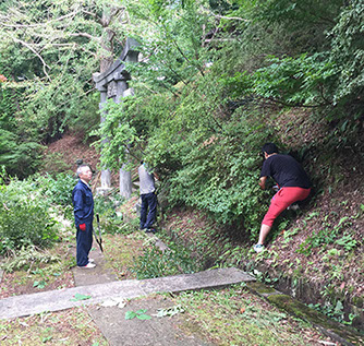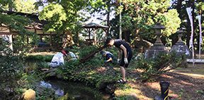 平成29年9月3日(日)各町内の皆様により、境内の池の周辺を清掃奉仕して頂きました。